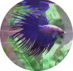 Here is a photo I took of Charlie today after cleaning his tank. For some reason, the camera phone only pulled in his blue coloring and did not show his red. Such a happy fishy boy :)