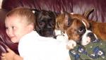 Colby is our 6 year old Black brindle boy, While Brandee is our 4 year old baby girl. Brandee got her champioship her first weekend out with two 5 point wins. The next weekend out she got another 5point win from a third judge for confirmation. Both dog absolutely love each other and our 5 year old son Dylan.