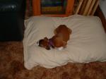 She is just adorable!!! Love the picture with her half off her Pillow. Ah........the joys of Puppyhood!