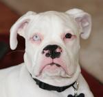 A Booker T white son had 1 blue eye. His owner adored it so much, she only had photographed from that side of his face :)