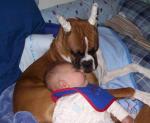 These were taken a few days ago. Tanner, Zammi and Pilot adore Gabriel (14 weeks old) and are every so gentle with him./ Pilot would love for Gabe to start to play, but that's not going to happen tto soon.