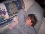 Of course she is invited up in the morning. So here is a pic (don't tell the b/f it's here, not his very best moment) - I've also attached a pic of Voodoo demonstrating how she kicked the b/f out of bed - lol.