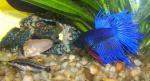 Long story short, my resolve melted and I brought home Bleu Boy. He quickly adapted to my 5 gallon tank and started chasing the cat fish around. He eagerly ate an offered meal and generally settled right in. I started to cry again. Both from sadness and joy. LOL--I am getting far too emotional in my older years.